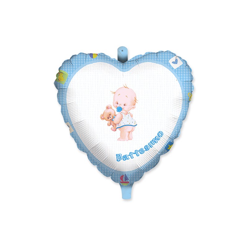 PALLONE MYLAR 18" BATTESIMO CUORE CELESTE
