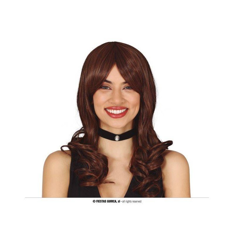 PARRUCCA CAPELLI CASTANI LUNGHI CON FRANGIA