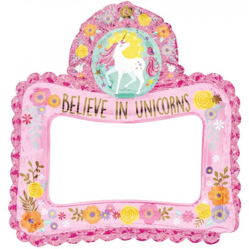 PALLONE MYLAR S/SHAPE SELFIE FRAME MAGICO UNICORNO PHOTO BOOTH 68x66cm