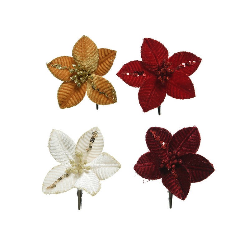 STELLA DI NATALE C/CLIP ø10cm IN VELLUTO ass.ti 1pz