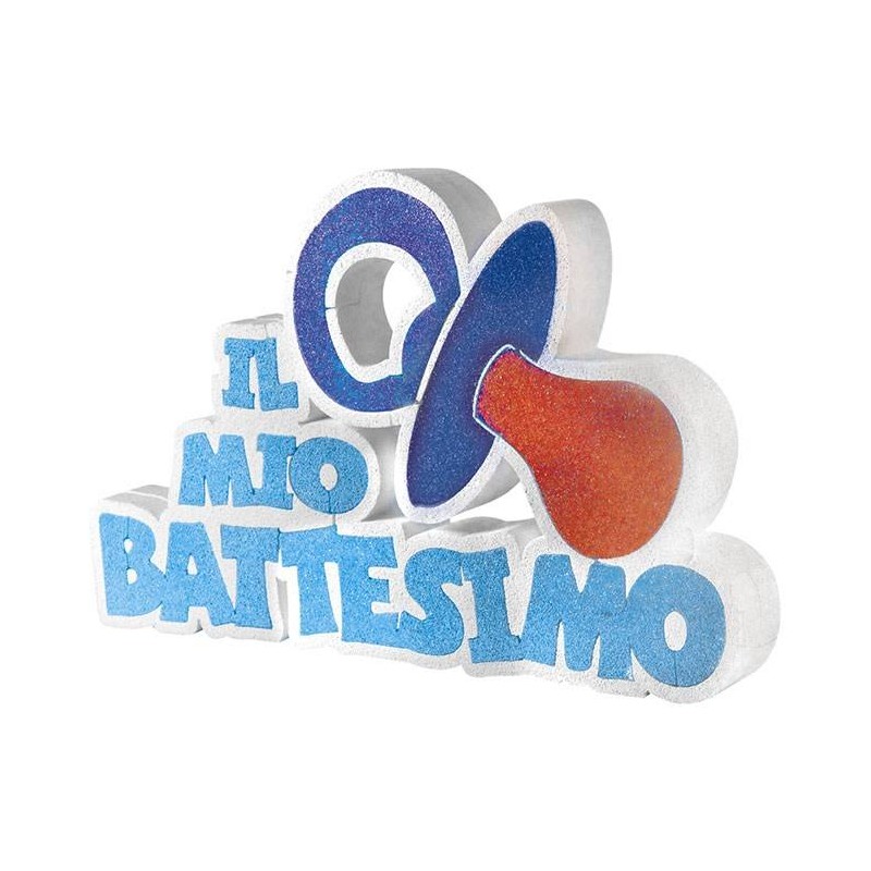 SCRITTA IN POLISTIROLO BATTESIMO CELESTE CIUCCIO 40x25x5cm