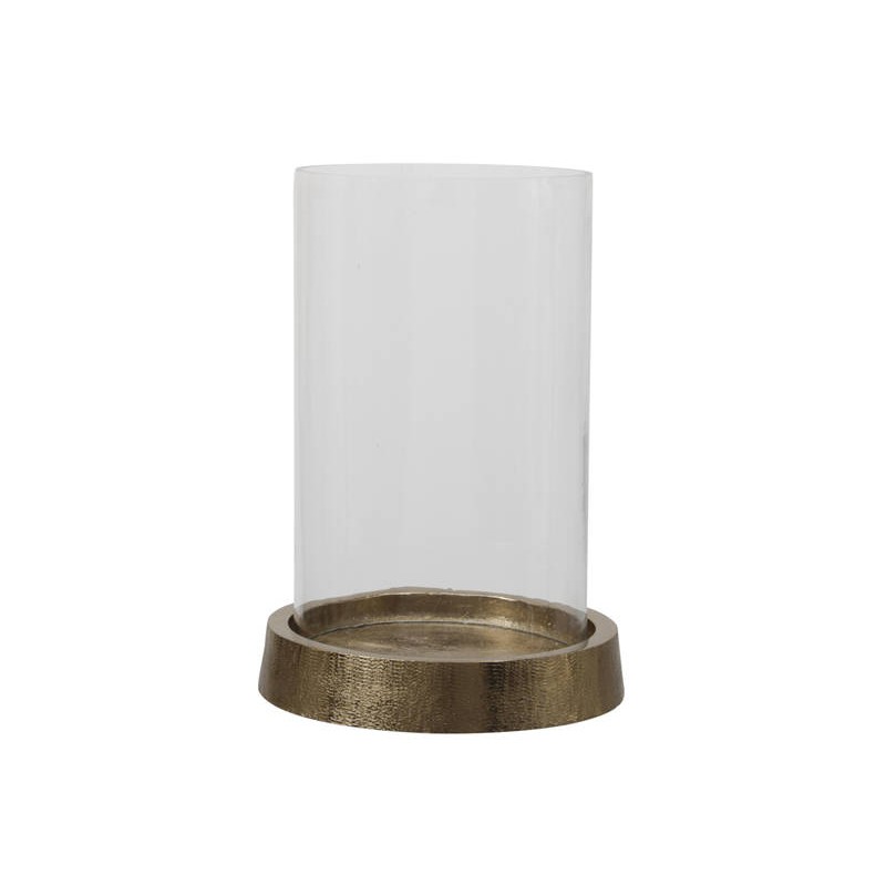 PORTA CANDELA CILINDRO VETRO + BASE ORO ø16x22cm