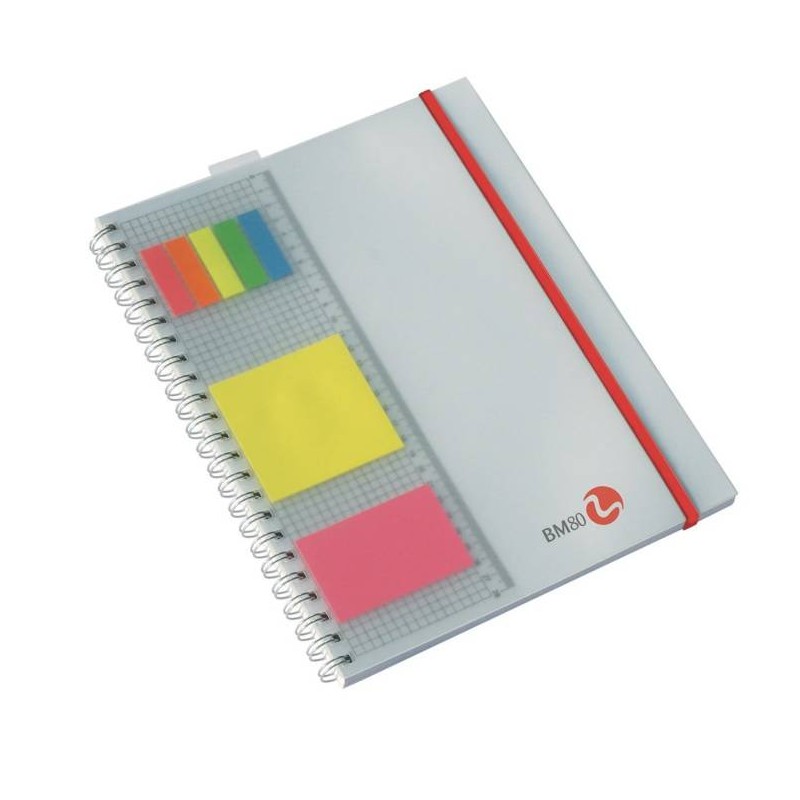 Blocco spiralato A4 con fori, righello rimovibile, stickers di diverse misure riposizionalbili e 5 separatori colorati. Copertina interna in 5 colori diversi, rigatura 5 mm e 1R. Confezione da 1 pezzo, colore assortito scelto da noi per te!