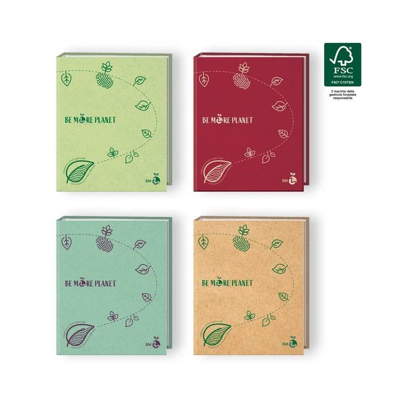 Raccoglitori ad anelli A4 realizzate con materie prime ecosostenibili. Cartoncino certificato FSC senza plastificazione derivante da foreste gestite in maniera controllata e responsabile secondo rigorosi standard ambientali. Meccanismo con 4 anelli di diamentro 3 cm. Confezione da 5 pezzi assortiti, 4 colori ispirati alle sfumature della natura, scelti da noi per te! Made in Italy e Plastic free.