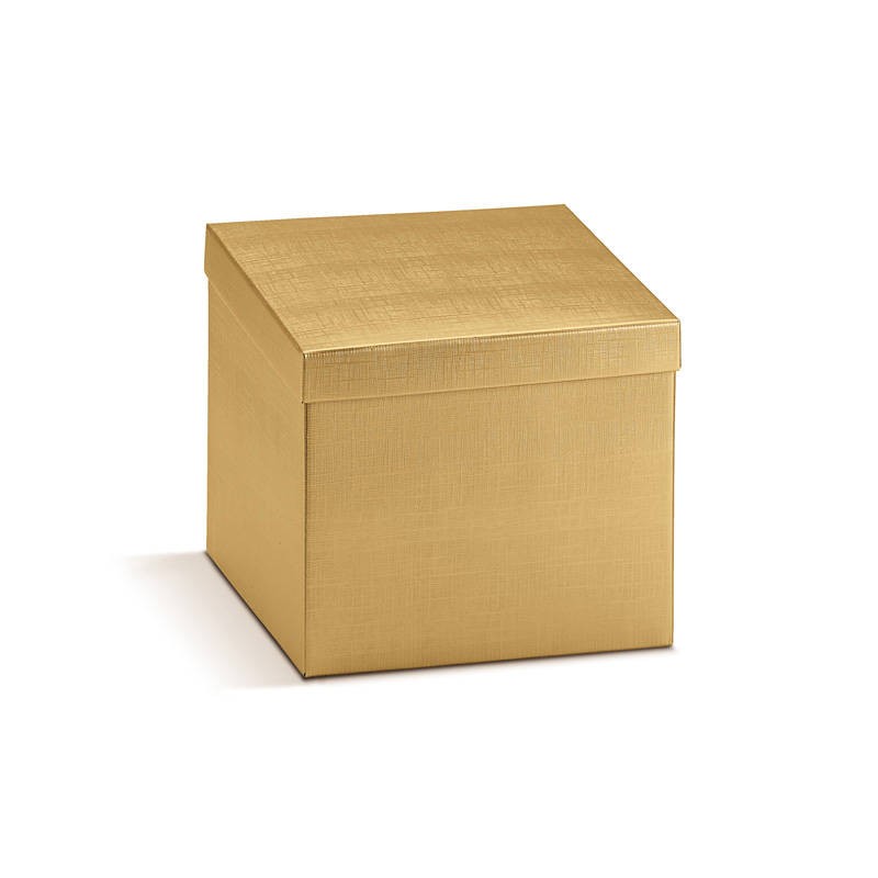 SCATOLA F/COPERCHIO 20x20x19cm SETA ORO
