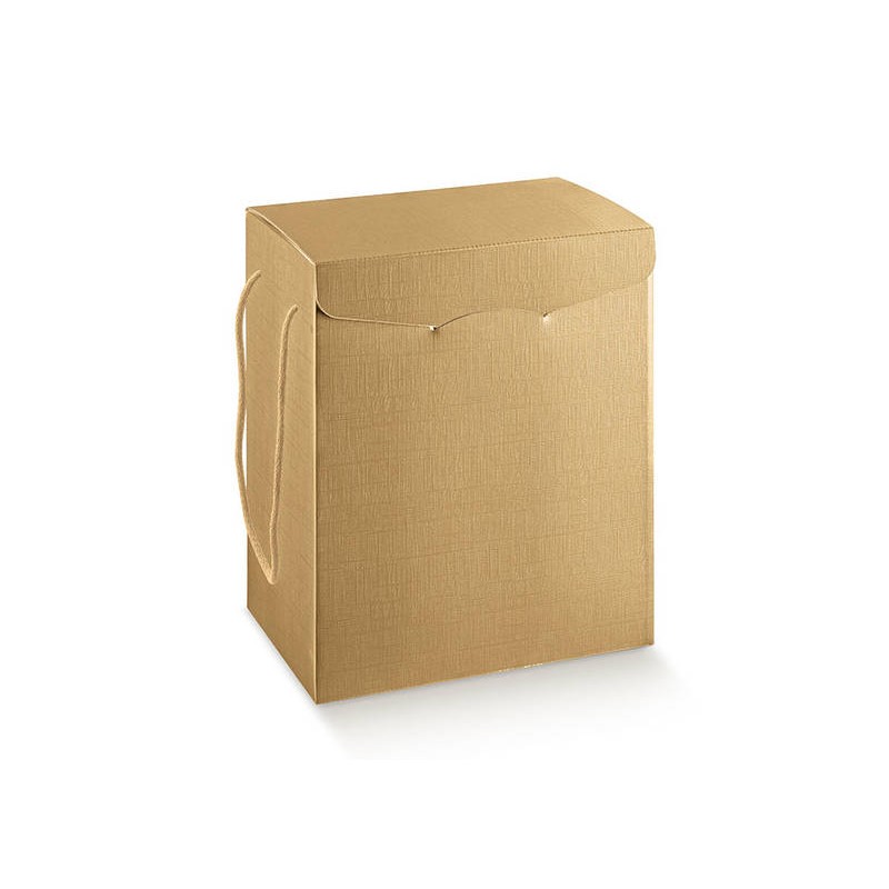 Scatola in cartone accoppiato per confezionare prodotti enogastronomici vari, oggetti, abbigliamento, archivio. Nei tre formati più grandi viene fornita con 2 pezzi di cartone da utilizzare come rinforzo per il fondo della scatola. Viene fornita con 2 cordini in cotone di 65cm., dotati di capocorda, per un inserimento automatico nei 4 fori predisposti nella scatola.