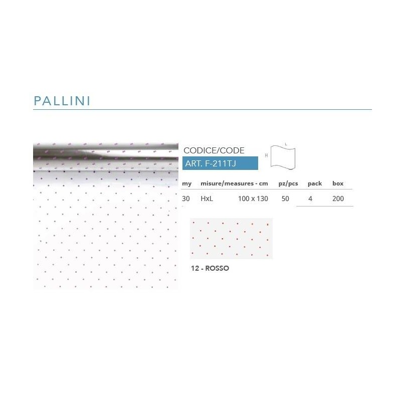 FOGLI CELLOPHANE 100x130cm DECORO PALLINI ROSSI STESO 50fg