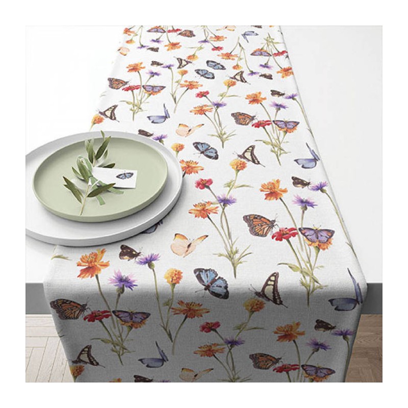 TABLERUNNER BUTTERFLY GARDEN WHITE 40x150cm