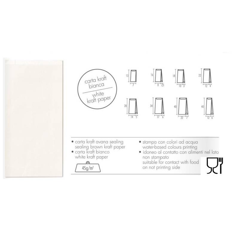 BUSTE REGALO CARTA SEALING BIANCA 10+3x18cm 100pz PER ALIMENTI