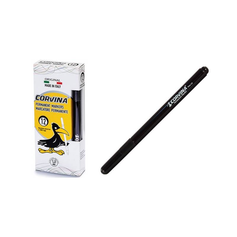 PENNARELLO CORVINA 1mm MARCATORE PERMANENTE NERO 12pz