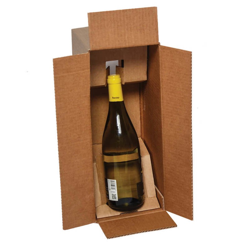 Il kit, interamente prodotto in cartone resistente, è composto da una scatola e da fustellati, innovativi nel design e di facile montaggio, che avvolgono le singole bottiglie ed evitano che parti esterne vanno in contatto con il vetro durante il trasporto. Sono kit idonei alla spedizione delle bottiglie più comunemente utilizzate: da 75 cl. fino a 10 cm di diametro e fino ad un’altezza massima di 33 cm.