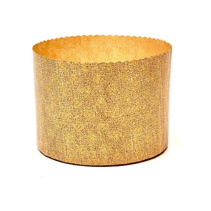 Stampo da cottura per Panettone in carta di pura cellulosa, con esterno colore ecrù e stampa floreale oro, per 1000/1.200 gr di prodotto.