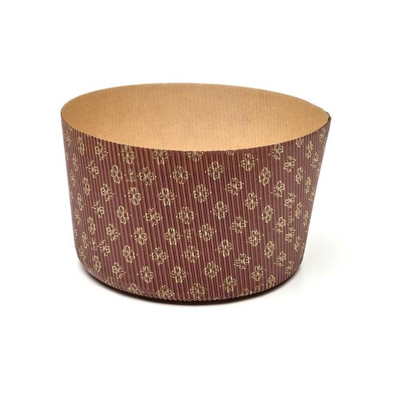 Lo stampo da forno è una forma di cottura in carta progettata per la produzione di panettoni, ma adatta anche ad altri tipi di impasti. La carta di pura cellulosa in micronda è resistente ai grassi alimentari in grado di sopportare sia il congelamento che la cottura in forno non oltre i 220°. Questa forma di cottura è riciclabile, non deve essere imburrata prima dell’utilizzo e grazie alla particolare struttura autoportante non necessita di essere inserita in stampi preformati di metallo. Il design elegante, marrone con decoro floreale dorato, lo rende adatto alla presentazione del prodotto finito.