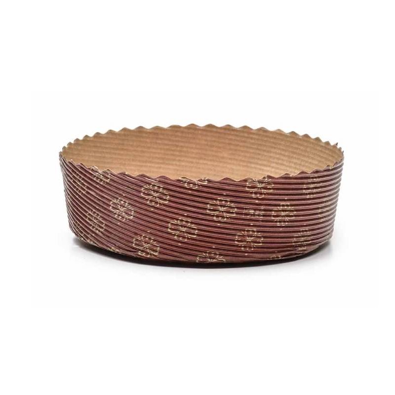 Lo stampo da forno monodose MBB 120 H 35 è una forma di cottura in carta progettata per la produzione di tortine, ma adatta anche ad altri tipi di impasti. La carta di pura cellulosa in micronda è resistente ai grassi alimentari e in grado di sopportare sia il congelamento che la cottura in forno fino a 220°. Questa forma di cottura è riciclabile, non deve essere imburrata prima dell’utilizzo e grazie alla particolare struttura autoportante non necessita di essere inserita in stampi preformati di metallo. Il design elegante, marrone con decoro floreale dorato, lo rende adatto alla presentazione del prodotto finito.