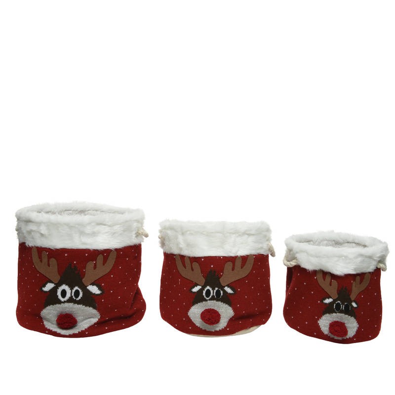 CESTO ROTONDO ROSSO CON RENNA PANNO Ø35xh35cm 3/3