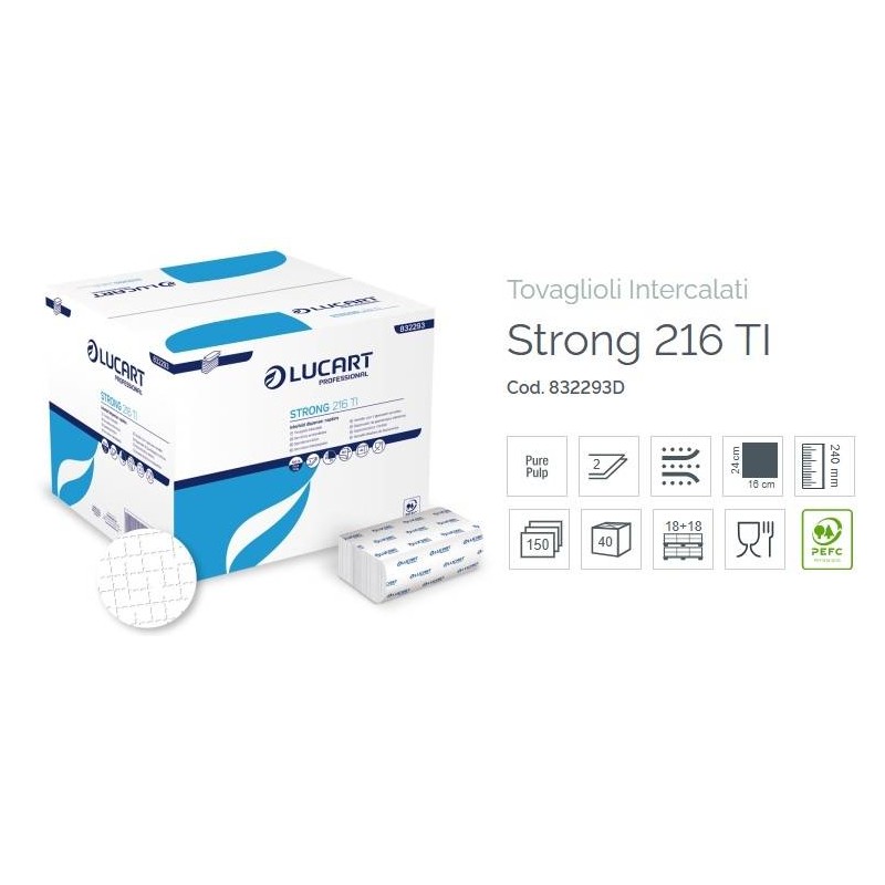 TOVAGLIOLI INTERCALATI PURA CELLULOSA 16x24cm 150pz STRONG LUCART