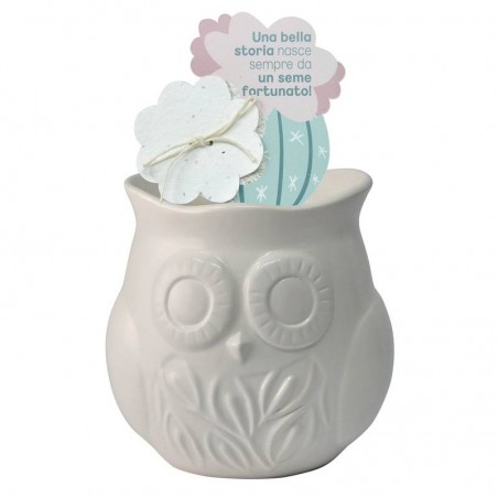VASETTO GUFO BABY BIANCO CON CARTA PIANTABILE 9x9cm