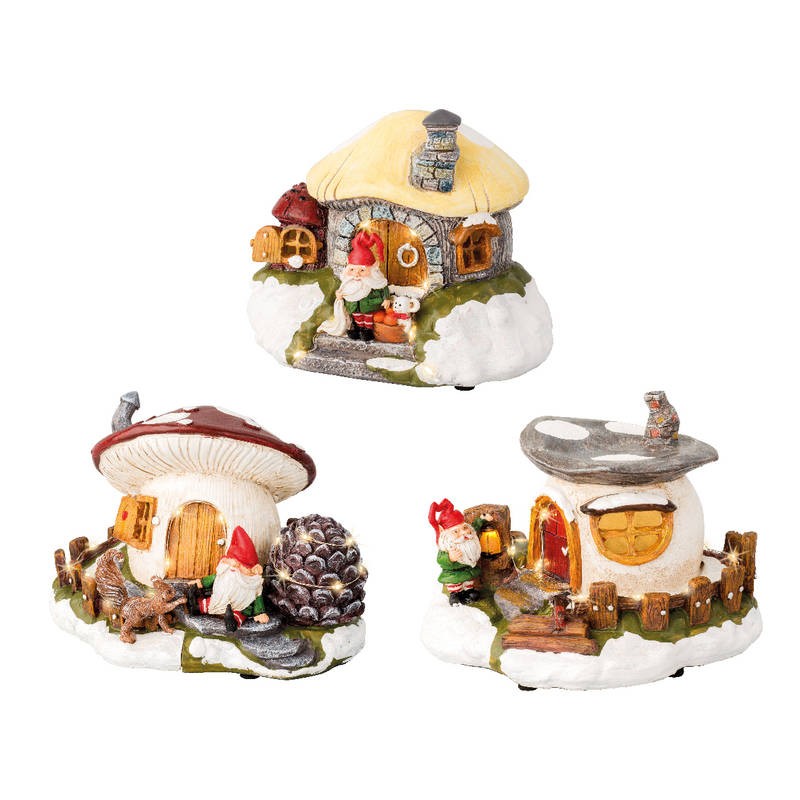 CASA GNOMO C/FUNGO E LED 19x15x13cm 3ass 1pz