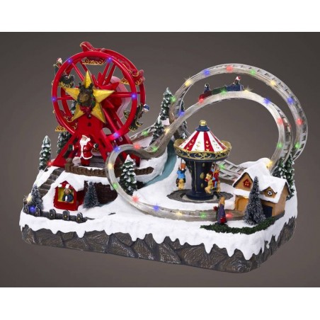 VILLAGGIO GIOSTRA NATALIZIA 33x21x24,5cm C/LUCI SUONO E MOVIMENTO