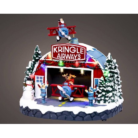 PAESAGGIO NATALE ANIMATO KRINGLE AIRWAYS 24,5x17x22,5cm